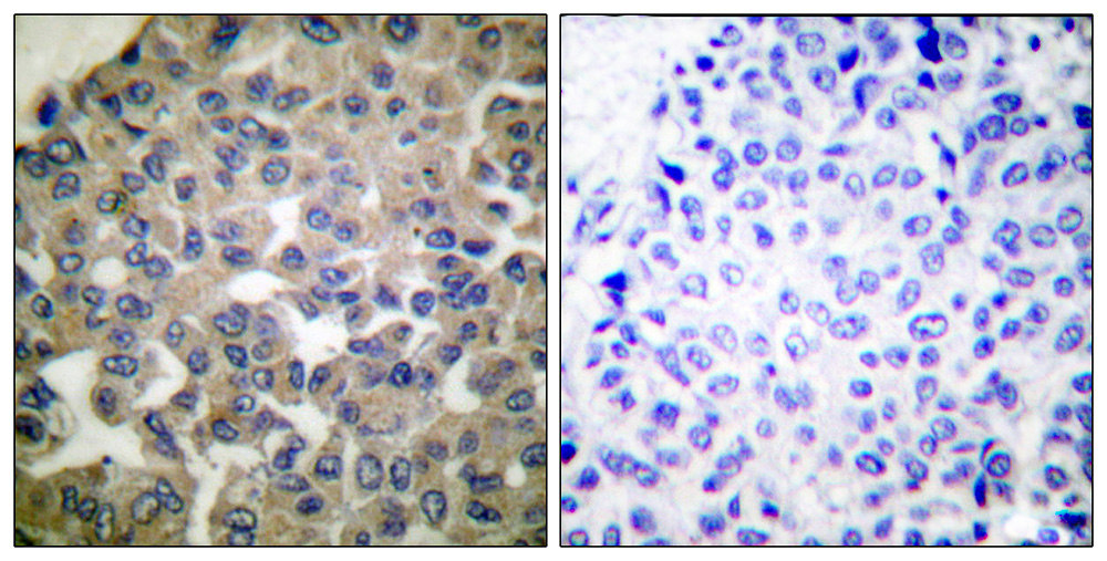 Immunohistochemical analysis of paraffin-embedded human breast carcinoma tissue using PLCG1 (Ab-771) antibody . |