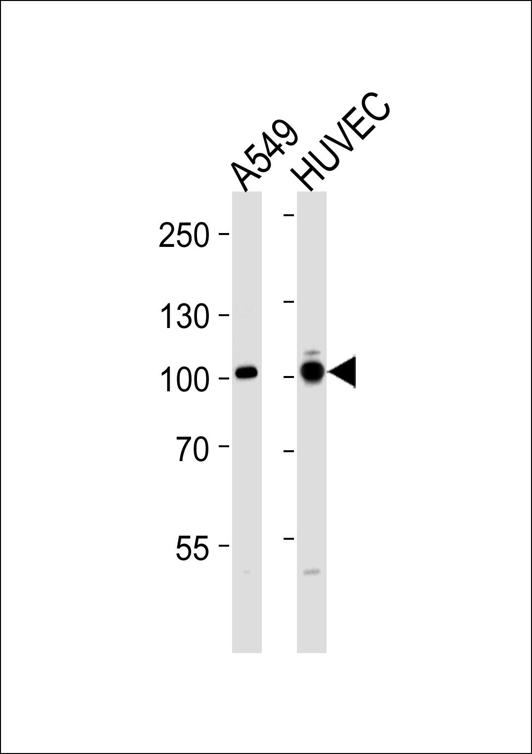 Western blot analysis of lysates from A549,HUVEC cell line (from left to right),using ADCY9 Antibody(C20506). C20506 was diluted at 1:1000 at each lane. A goat anti-rabbit IgG H&L(HRP) at 1:5000 dilution was used as the secondary antibody.Lysates at 35ug per lane.