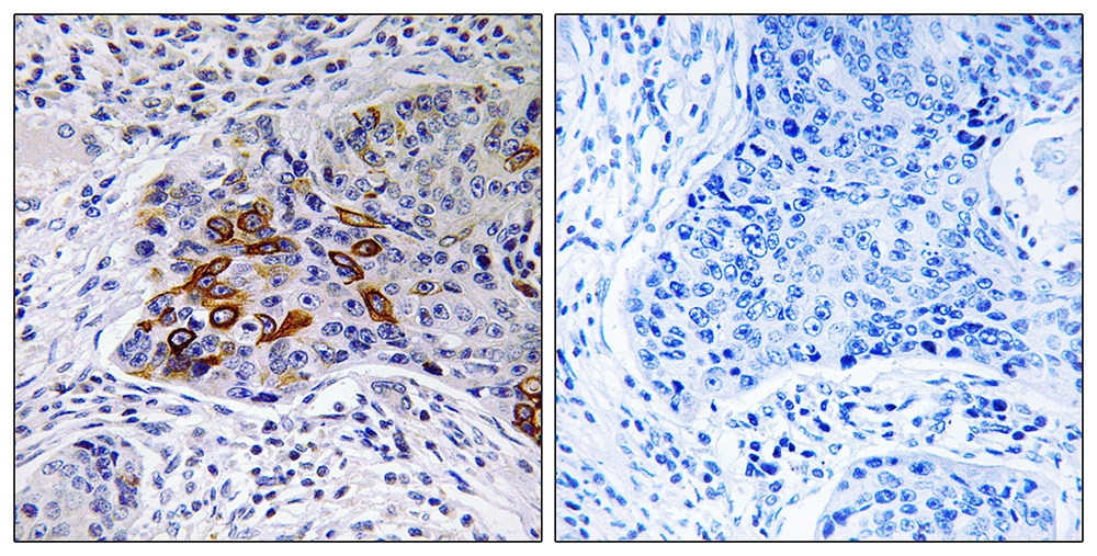 Immunohistochemistry analysis of paraffin-embedded human lung carcinoma tissue, using ADCY9 antibody. |