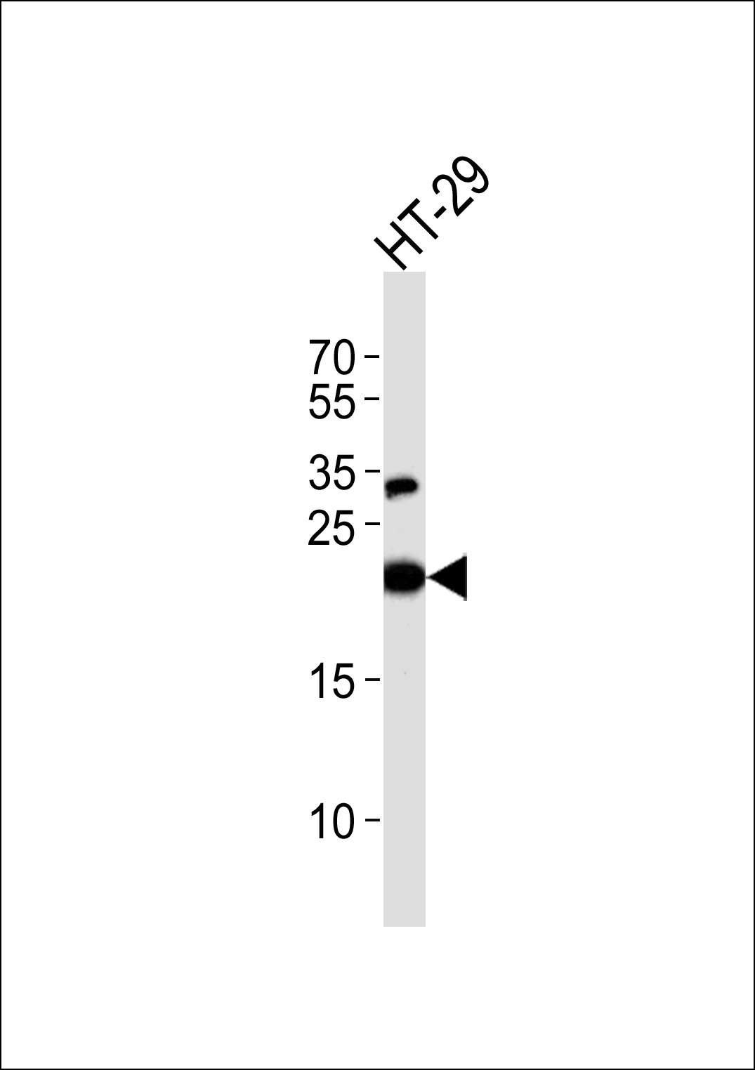 Western blot analysis of lysate from HT-29 cell line,using RAB6A Antibody(C18266). C18266 was diluted at 1:1000. A goat anti-rabbit IgG H&L(HRP) at 1:5000 dilution was used as the secondary antibody.Lysate at 35ug. |