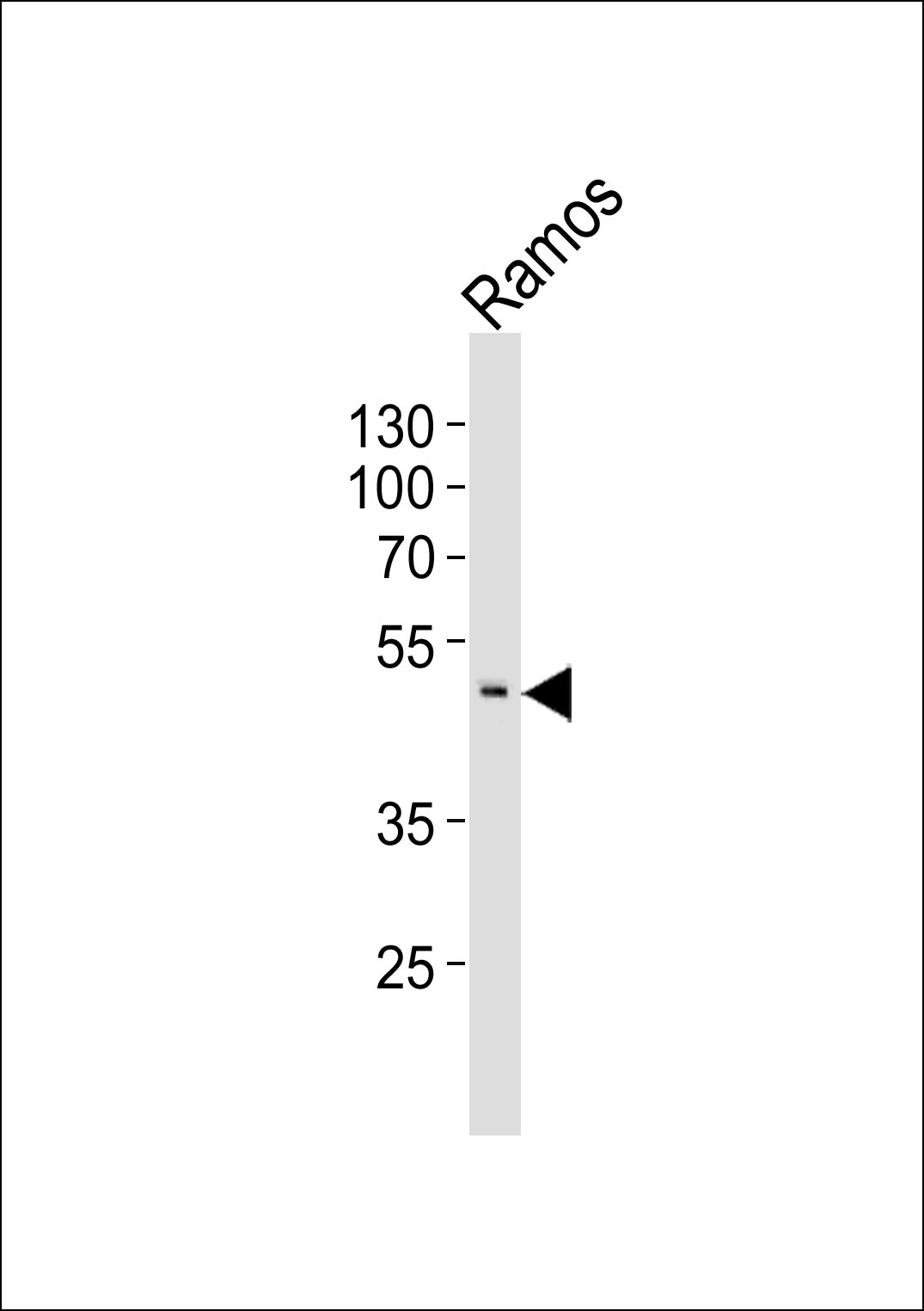 Western blot analysis of lysate from Ramos cell line,using Pax-5 Antibody(C0297). C0297 was diluted at 1:1000. A goat anti-rabbit IgG H&L(HRP) at 1:5000 dilution was used as the secondary antibody.Lysate at 35ug. |