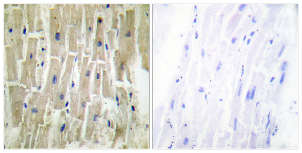 Immunohistochemistry analysis of paraffin-embedded human heart tissue using PDLIM1 antibody. |