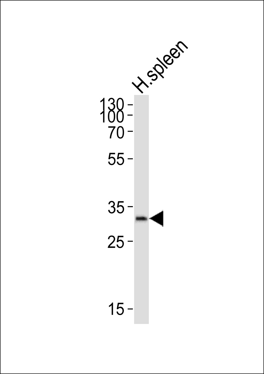 Western blot analysis of lysate from human spleen tissue lysate,using ELOVL1 Antibody(APR07674G). APR07674G was diluted at 1:1000. A goat anti-rabbit IgG H&L(HRP) at 1:5000 dilution was used as the secondary antibody.Lysate at 35ug. |