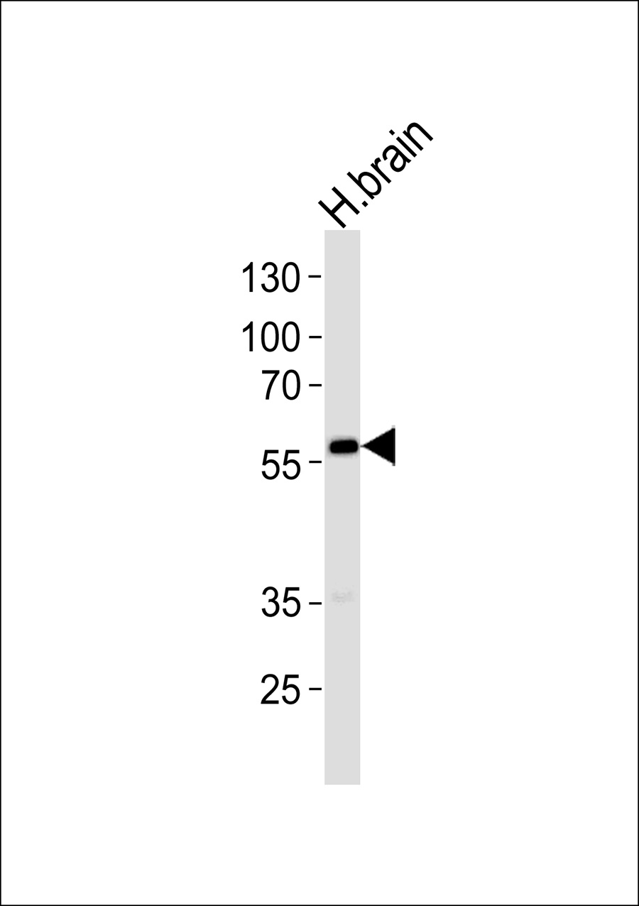 Western blot analysis of lysate from human brain tissue lysate,using ALDH1A2 Antibody(APR11371G). APR11371G was diluted at 1:1000. A goat anti-rabbit IgG H&L(HRP) at 1:5000 dilution was used as the secondary antibody.Lysate at 35ug. |