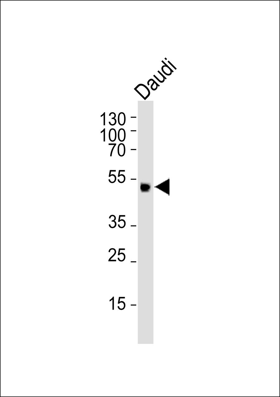 Western blot analysis of lysate from Daudi cell line,using p47 phox (Ab-345) Antibody(APR08904G). APR08904G was diluted at 1:1000. A goat anti-rabbit IgG H&L(HRP) at 1:5000 dilution was used as the secondary antibody.Lysate at 35ug. |