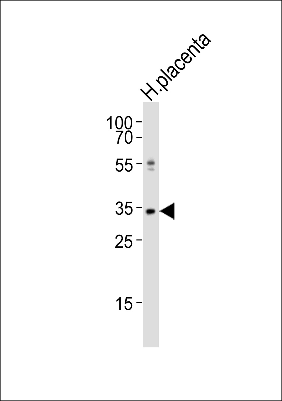 Western blot analysis of lysate from human placenta tissue lysate,using PITPNB Antibody(AMR09294G). AMR09294G was diluted at 1:1000. A goat anti-rabbit IgG H&L(HRP) at 1:5000 dilution was used as the secondary antibody.Lysate at 35ug. |