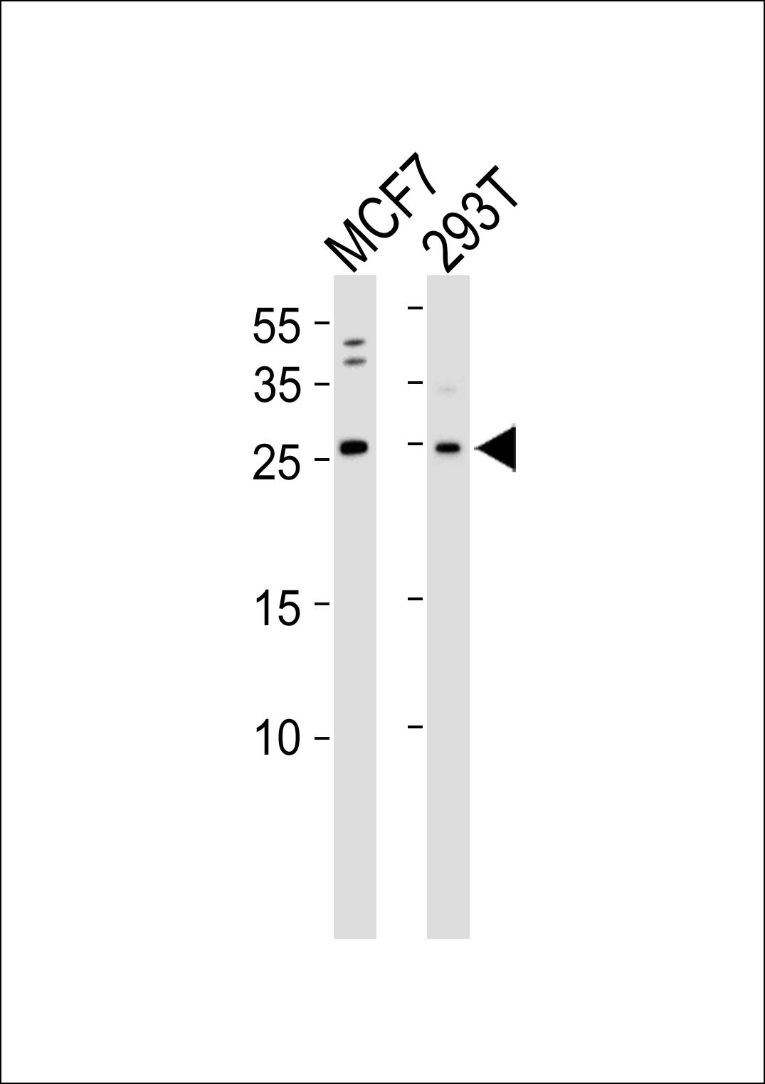 Western blot analysis of lysates from MCF7,293T cell line (from left to right),using ARF6 Antibody(APR14998G). APR14998G was diluted at 1:1000 at each lane. A goat anti-rabbit IgG H&L(HRP) at 1:5000 dilution was used as the secondary antibody.Lysates at 35ug per lane. |