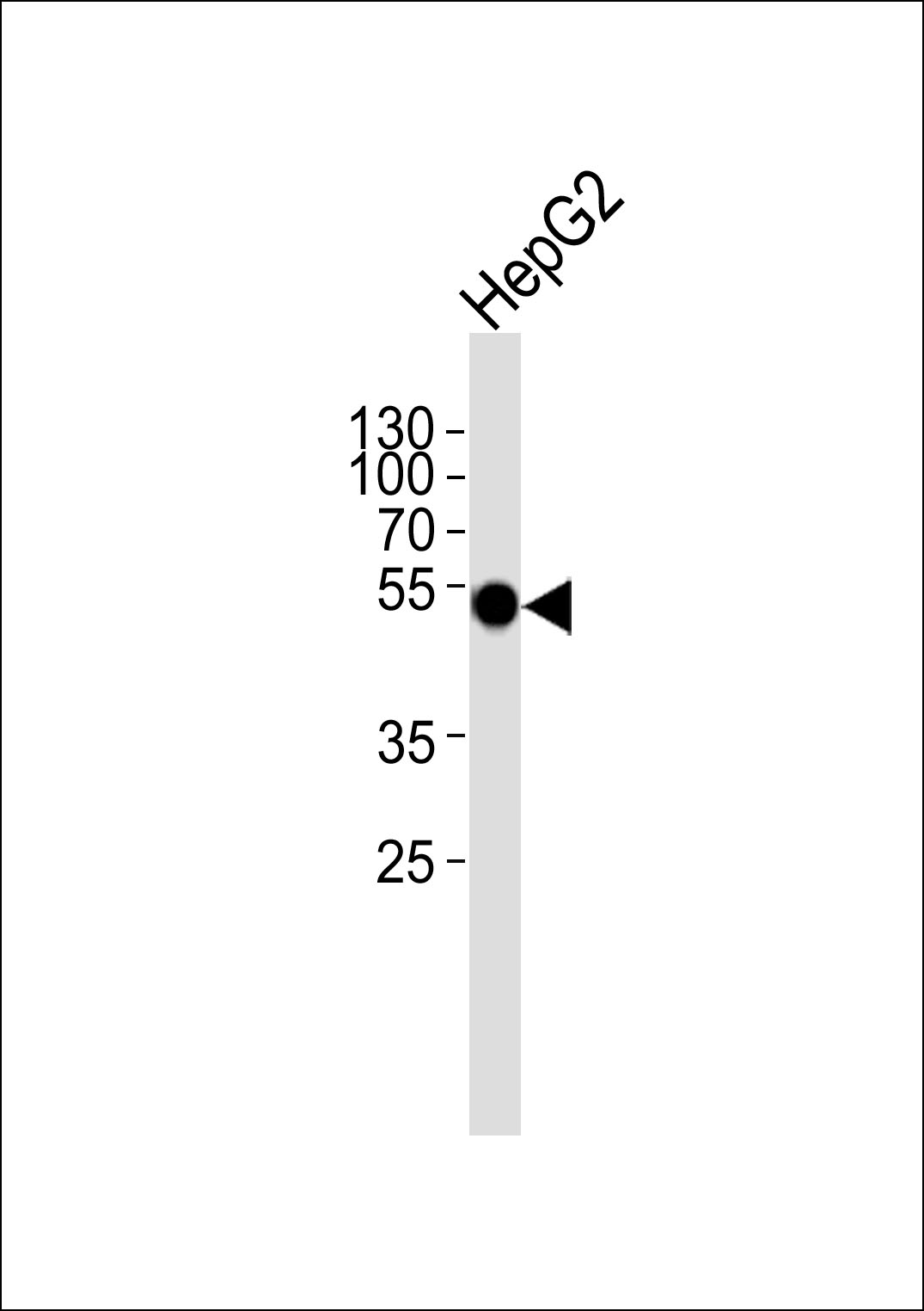 Western blot analysis of lysate from HepG2 cell line,using Tubulin α Antibody(AMM08397G). AMM08397G was diluted at 1:1000. A goat anti-rabbit IgG H&L(HRP) at 1:5000 dilution was used as the secondary antibody.Lysate at 35ug.