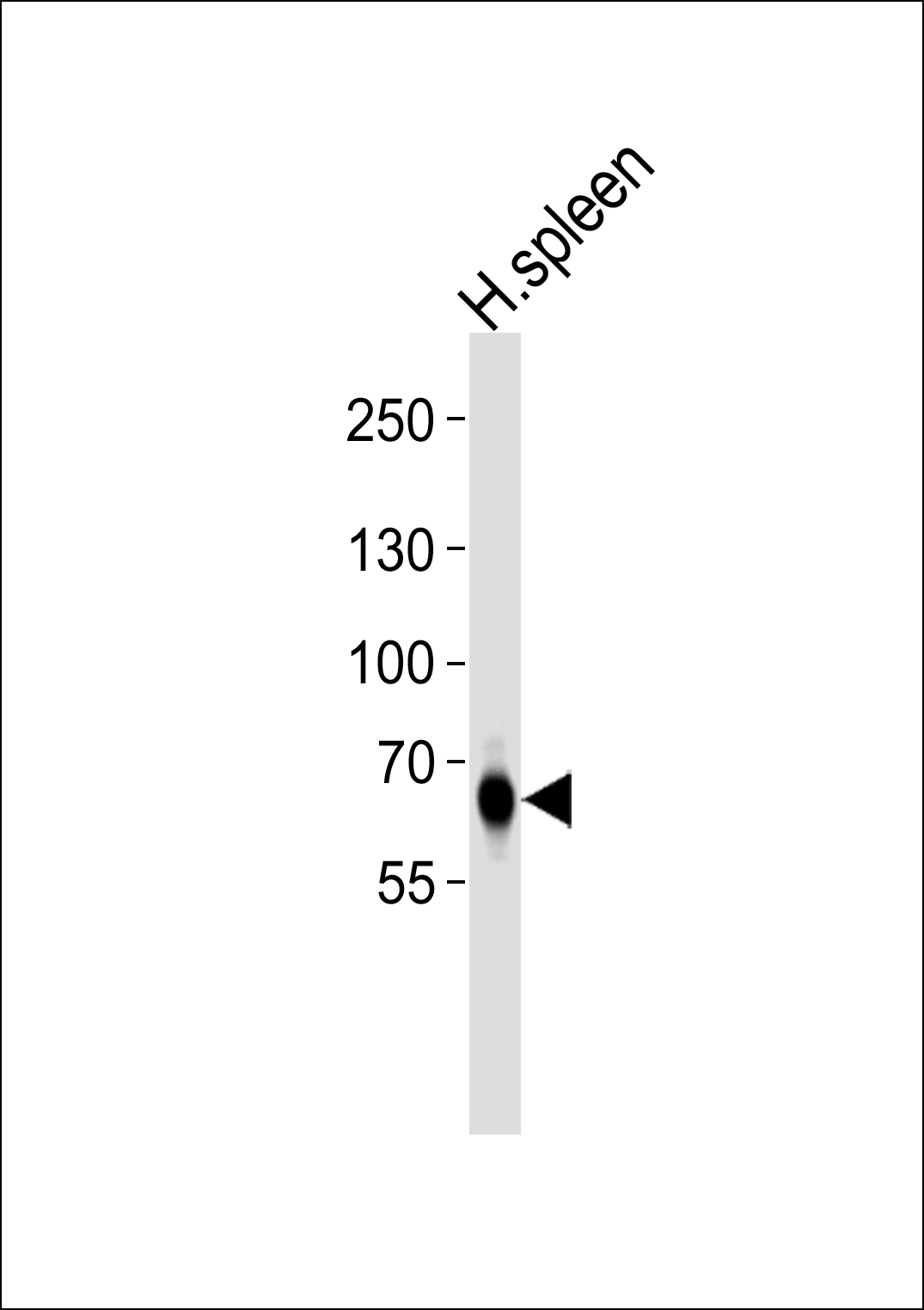 Western blot analysis of lysate from human spleen tissue lysate, using MX1 + MX2 antibody(APG02927G). APG02927G was diluted at 1:1000. A goat anti-rabbit IgG H&L(HRP) at 1:10000 dilution was used as the secondary antibody.Lysate at 20ug. |