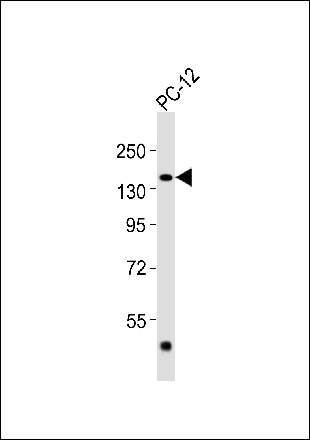 Anti-Adenylate Cyclase 5/6 Antibodyat 1:1000 dilution + PC-12 whole cell lysates Lysates/proteins at 20 μg per lane. Secondary Goat Anti-Rabbit IgG, (H+L),Peroxidase conjugated at 1/10000 dilution Predicted band size : 139 kDa Blocking/Dilution buffer: 5% NFDM/TBST. |