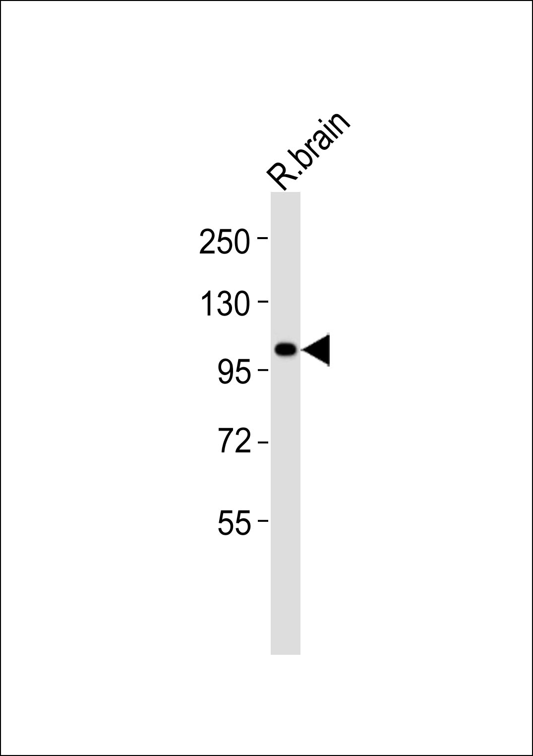 Anti-GPR110 Antibody at 1:1000 dilution + rat brain lysates Lysates/proteins at 20 μg per lane. Secondary Goat Anti-Rabbit IgG, (H+L),Peroxidase conjugated at 1/10000 dilution Predicted band size : 101 kDa Blocking/Dilution buffer: 5% NFDM/TBST. |