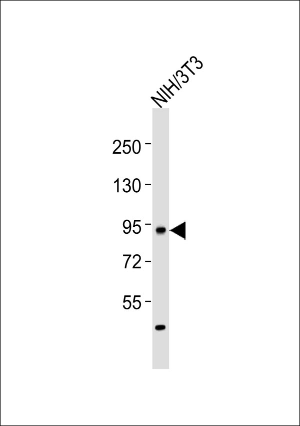 Anti-Dishevelled 3 Antibodyat 1:1000 dilution + NIH/3T3 whole cell lysates Lysates/proteins at 20 μg per lane. Secondary Goat Anti-Rabbit IgG, (H+L),Peroxidase conjugated at 1/10000 dilution Predicted band size : 78 kDa Blocking/Dilution buffer: 5% NFDM/TBST. |