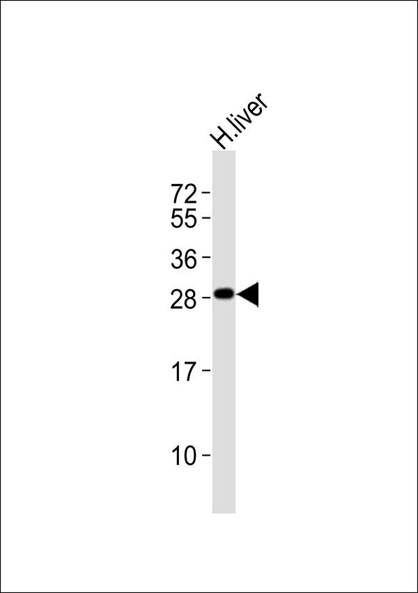 Anti-GSTM1 Antibodyat 1:1000 dilution + human liver lysates Lysates/proteins at 20 μg per lane. Secondary Goat Anti-Rabbit IgG, (H+L),Peroxidase conjugated at 1/10000 dilution Predicted band size : 26 kDa Blocking/Dilution buffer: 5% NFDM/TBST. |