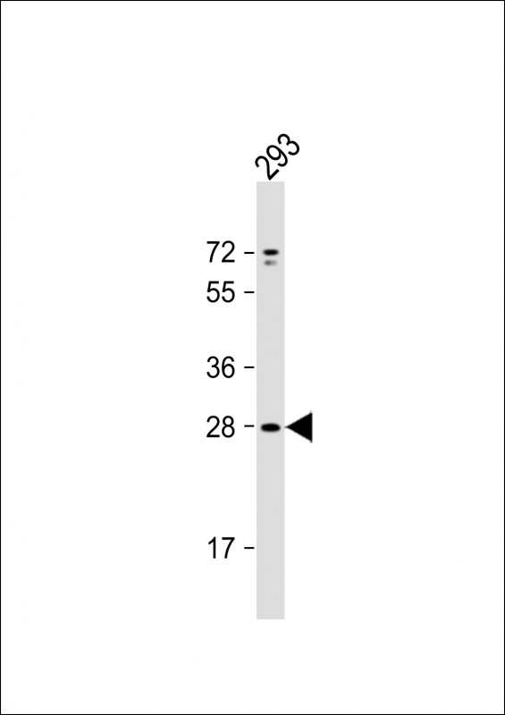 Anti-UNC50 Antibody (N-term) at 1:1000 dilution + 293 whole cell lysate Lysates/proteins at 20 μg per lane. Secondary Goat Anti-Rabbit IgG, (H+L), Peroxidase conjugated at 1/10000 dilution. Predicted band size : 30 kDa Blocking/Dilution buffer: 5% NFDM/TBST.