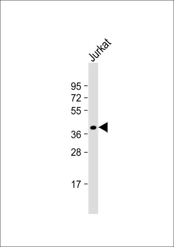 Anti-FAM84B Antibody at 1:1000 dilution + Jurkat whole cell lysate Lysates/proteins at 20 μg per lane. Secondary Goat Anti-Rabbit IgG, (H+L),Peroxidase conjugated at 1/10000 dilution. Predicted band size : 36 kDa Blocking/Dilution buffer: 5% NFDM/TBST. |
