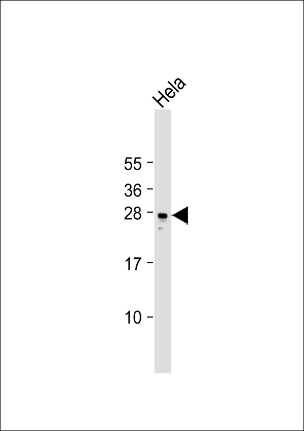 Anti-RAB34 Antibody at 1:1000 dilution + Hela whole cell lysate Lysates/proteins at 20 μg per lane. Secondary Goat Anti-Rabbit IgG, (H+L),Peroxidase conjugated at 1/10000 dilution. Predicted band size : 29 kDa Blocking/Dilution buffer: 5% NFDM/TBST. |
