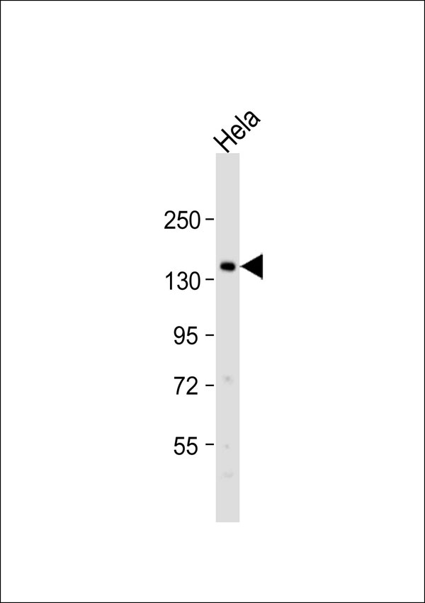 Anti-SHIP2 Antibody at 1:1000 dilution + Hela whole cell lysate Lysates/proteins at 20 μg per lane. Secondary Goat Anti-Rabbit IgG, (H+L),Peroxidase conjugated at 1/10000 dilution. Predicted band size : 139 kDa Blocking/Dilution buffer: 5% NFDM/TBST. |