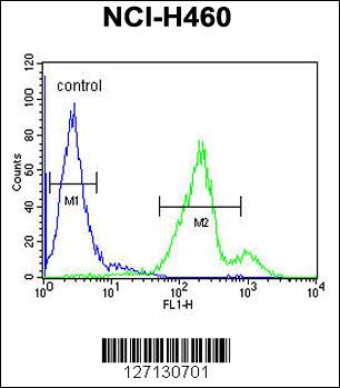 SC31B Antibody (C-term) (Cat. AMM07717G) flow cytometric analysis of NCI-H460 cells (right histogram) compared to a negative control cell (left histogram).FITC-conjugated goat-anti-rabbit secondary antibodies were used for the analysis. |