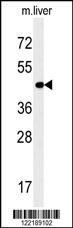 PAOX Antibody (Center) (Cat. APR17750G) western blot analysis in mouse liver tissue lysates (35ug/lane).This demonstrates the PAOX antibody detected the PAOX protein (arrow).