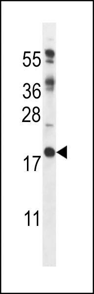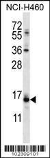 DSCR1L1 Antibody (Q21) (Cat. APR11269G) western blot analysis in NCI-H460 cell line lysates (35ug/lane).This demonstrates the DSCR1L1 antibody detected the DSCR1L1 protein (arrow).