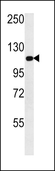 GPRC1C Antibody (R841) (Cat. AMM06384G) western blot analysis in NCI-H292 cell line lysates (35ug/lane).This demonstrates the GPRC1C antibody detected the GPRC1C protein (arrow). |