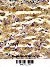 Formalin-fixed and paraffin-embedded human hepatocarcinoma with FABP3 Antibody (N-term), which was peroxidase-conjugated to the secondary antibody, followed by DAB staining. This data demonstrates the use of this antibody for immunohistochemistry; clinical relevance has not been evaluated.