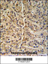 GNS Antibody (Center S298) (Cat. AMM04845G) IHC analysis in formalin fixed and paraffin embedded human hepatocarcinoma followed by peroxidase conjugation of the secondary antibody and DAB staining. This data demonstrates the use of the GNS Antibody (Center S298) for immunohistochemistry. Clinical relevance has not been evaluated.