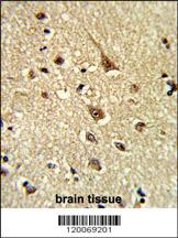 Formalin-fixed and paraffin-embedded human brain tissue reacted with GLO1 Antibody (N-term), which was peroxidase-conjugated to the secondary antibody, followed by DAB staining. This data demonstrates the use of this antibody for immunohistochemistry; clinical relevance has not been evaluated. |