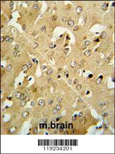 CRHR2 Antibody (Center) (Cat. AMM05792G) IHC analysis in formalin fixed and paraffin embedded mouse brain tissue followed by peroxidase conjugation of the secondary antibody and DAB staining. This data demonstrates the use of the CRHR2 Antibody (Center) for immunohistochemistry. Clinical relevance has not been evaluated. |