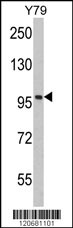 Western blot analysis of KPNB1 Antibody (N-term) (Cat. APR17046G) in Y79 cell line lysates (35ug/lane). KPNB1 (arrow) was detected using the purified Pab.