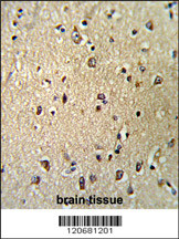 Formalin-fixed and paraffin-embedded human brain tissue reacted with KPNB1 Antibody (N-term), which was peroxidase-conjugated to the secondary antibody, followed by DAB staining. This data demonstrates the use of this antibody for immunohistochemistry; clinical relevance has not been evaluated.
