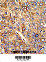 Formalin-fixed and paraffin-embedded human hepatocarcinoma with FTH1 Antibody (C-term), which was peroxidase-conjugated to the secondary antibody, followed by DAB staining. This data demonstrates the use of this antibody for immunohistochemistry; clinical relevance has not been evaluated. |