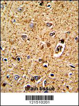 Formalin-fixed and paraffin-embedded human brain tissue with TPH1 Antibody (N-term), which was peroxidase-conjugated to the secondary antibody, followed by DAB staining. This data demonstrates the use of this antibody for immunohistochemistry; clinical relevance has not been evaluated.