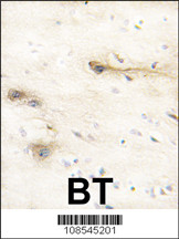 Formalin-fixed and paraffin-embedded human brain tissue reacted with MARK1 Antibody (N-term)(Cat. APR14354G), which was peroxidase-conjugated to the secondary antibody, followed by DAB staining. This data demonstrates the use of this antibody for immunohistochemistry; clinical relevance has not been evaluated. |