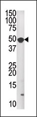The anti-MKNK1 Pab (Cat. APR17386G) is used in Western blot to detect MKNK1 in A2058 tissue lysate |