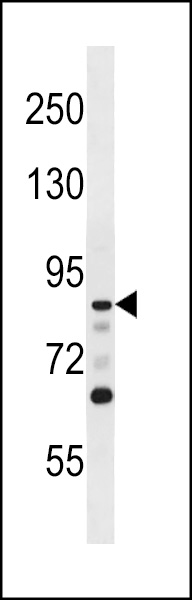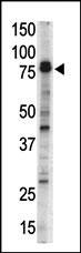 Western blot analysis of DCAMKL1 Antibody (N-term)(Cat. APR11254G) in mouse brain tissue lysate. DCAMKL1 (arrow) was detected using purified Pab. Secondary HRP-anti-rabbit was used for signal visualization with chemiluminescence.