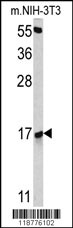 Western blot analysis of RBM3 antibody (Center) (Cat. AMR09701G) in NIH-3T3 cell line lysates (35ug/lane). RBM3 (arrow) was detected using the purified Pab.