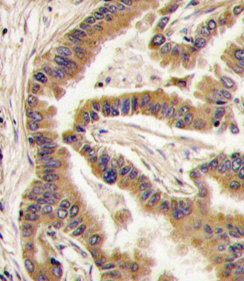 Formalin-fixed and paraffin-embedded human lung carcinoma tissue reacted with CK1a antibody (C-term), which was peroxidase-conjugated to the secondary antibody, followed by DAB staining. This data demonstrates the use of this antibody for immunohistochemistry; clinical relevance has not been evaluated.