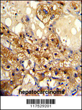 Formalin-fixed and paraffin-embedded human hepatocarcinoma with CYP20A1 Antibody (C-term), which was peroxidase-conjugated to the secondary antibody, followed by DAB staining. This data demonstrates the use of this antibody for immunohistochemistry; clinical relevance has not been evaluated.