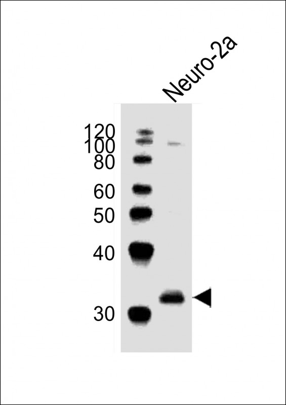 Anti-EN2Antibody(C-term)at 1:1000 dilution + Neuro-2a whole cell lysates Lysates/proteins at 20 μg per lane. Secondary Goat Anti-Rabbit IgG, (H+L), Peroxidase conjugated at 1/10000 dilution Predicted band size : 34 kDa Blocking/Dilution buffer: 5% NFDM/TBST.