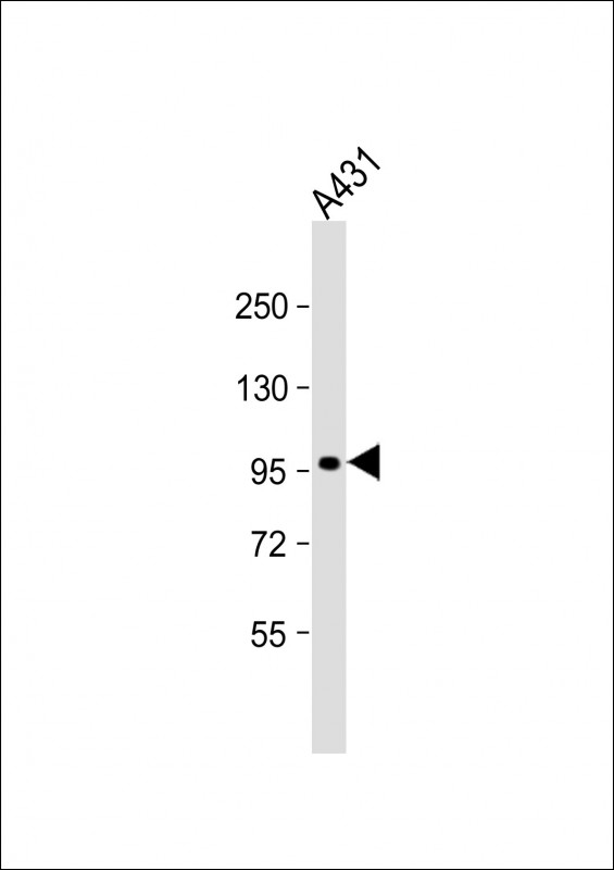 Anti-ERK3 Antibody (Q707) at 1:500 dilution + A431 whole cell lysate Lysates/proteins at 20 μg per lane. Secondary Goat Anti-Rabbit IgG, (H+L), Peroxidase conjugated at 1/10000 dilution. Predicted band size : 83 kDa Blocking/Dilution buffer: 5% NFDM/TBST. |