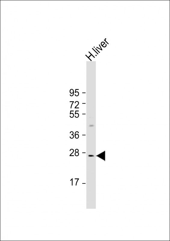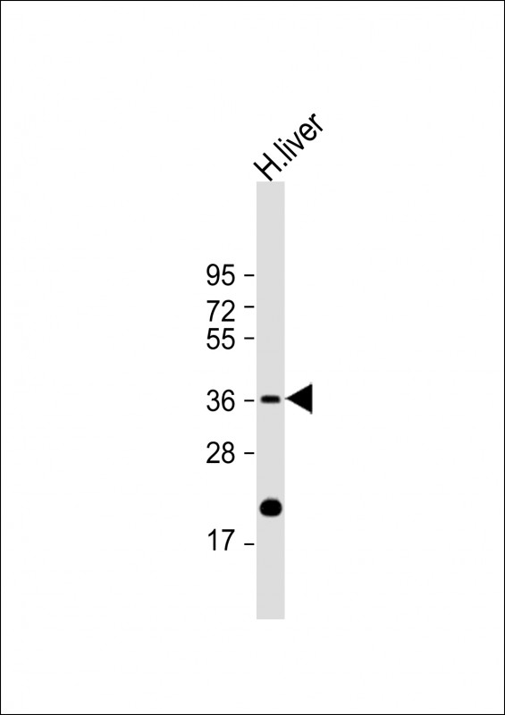 Anti-IGFBP-3-S183 Antibody at 1:1000 dilution + human liver lysate Lysates/proteins at 20 μg per lane. Secondary Goat Anti-Rabbit IgG, (H+L), Peroxidase conjugated at 1/10000 dilution. Predicted band size : 32 kDa Blocking/Dilution buffer: 5% NFDM/TBST.