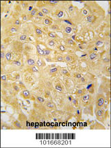Formalin-fixed and paraffin-embedded human hepatocarcinoma tissue reacted with ILK1/ILK2 Antibody (N-term) (Cat. APR14279G), which was peroxidase-conjugated to the secondary antibody, followed by DAB staining. This data demonstrates the use of this antibody for immunohistochemistry; clinical relevance has not been evaluated. |