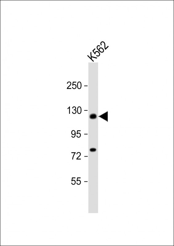 Anti-DAXX Antibody (S495) at 1:1000 dilution + K562 whole cell lysate Lysates/proteins at 20 μg per lane. Secondary Goat Anti-Rabbit IgG, (H+L), Peroxidase conjugated at 1/10000 dilution. Predicted band size : 81 kDa Blocking/Dilution buffer: 5% NFDM/TBST. |
