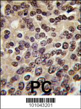 Formalin-fixed and paraffin-embedded human prostata carcinoma tissue reacted with PKN beta antibody (C-term), which was peroxidase-conjugated to the secondary antibody, followed by DAB staining. This data demonstrates the use of this antibody for immunohistochemistry; clinical relevance has not been evaluated. |