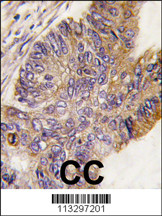 Formalin-fixed and paraffin-embedded human colon carcinoma tissue reacted with RPS6KA1 Antibody (S732), which was peroxidase-conjugated to the secondary antibody, followed by DAB staining. This data demonstrates the use of this antibody for immunohistochemistry; clinical relevance has not been evaluated. |
