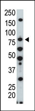 This HUNK antibody is generated from rabbits immunized with a KLH conjugated synthetic peptide between 659-690 amino acids from the C-terminal region of human HUNK.