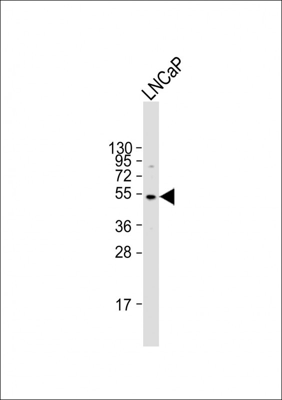 Anti-ULK3 Antibody (N-term) at 1:2000 dilution + LNCaP whole cell lysate Lysates/proteins at 20 μg per lane. Secondary Goat Anti-Rabbit IgG, (H+L), Peroxidase conjugated at 1/10000 dilution. Predicted band size : 53 kDa Blocking/Dilution buffer: 5% NFDM/TBST.