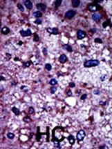 Formalin-fixed and paraffin-embedded human cancer tissue reacted with the primary antibody, which was peroxidase-conjugated to the secondary antibody, followed by DAB staining. This data demonstrates the use of this antibody for immunohistochemistry; clinical relevance has not been evaluated. BC = breast carcinoma; HC = hepatocarcinoma. |
