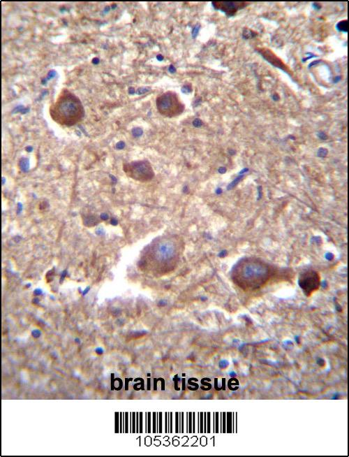 ITPKB Antibody (N-term) (Cat. APR16949G)immunohistochemistry analysis in formalin fixed and paraffin embedded human brain tissue followed by peroxidase conjugation of the secondary antibody and DAB staining.This data demonstrates the use of ITPKB Antibody (N-term) for immunohistochemistry. Clinical relevance has not been evaluated.
